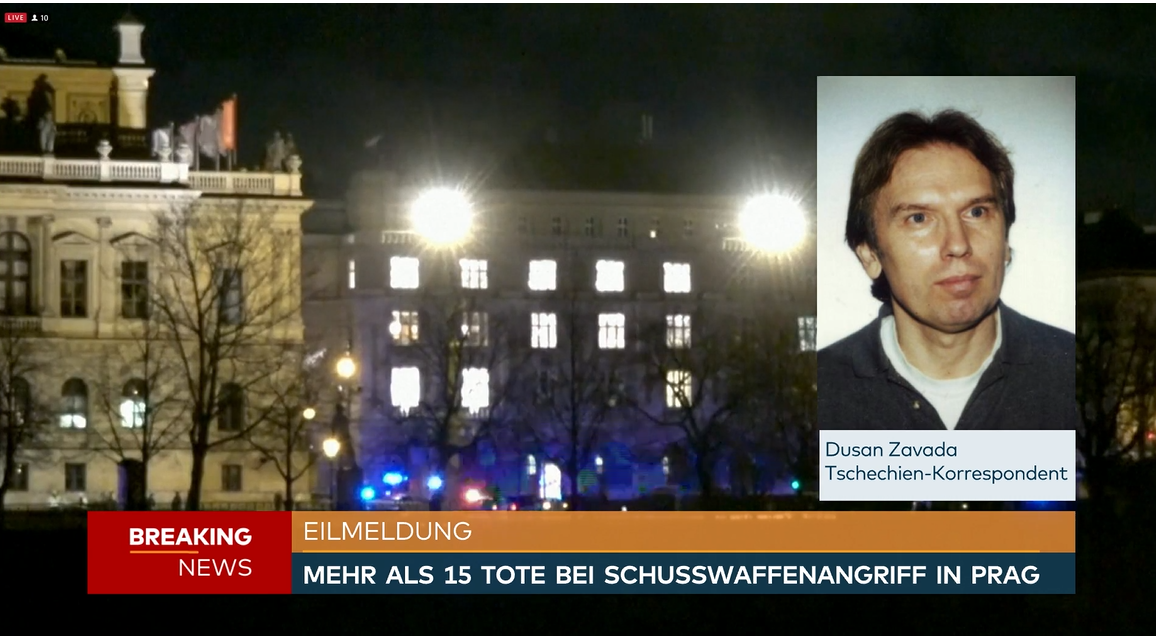 Dne 21.12. 2023 došlo k tragické události na Filozofické fakultě Univerzity Karlovy, o které informovala snad všechna důležitá světová média, včetně těch německých. O šíleném střelci Davidovi K. informoval průběžně z Prahy rovněž i korespondent německého deníku DIE WELT Dušan Závada. Pomineme-li jeho poměrně špatnou němčinu se silným českým přízvukem, který ale německým posluchačům může v dané chvíli dodat pocit autentičnosti, dopouštěl se ve svých komentářích řady spekulací, ne-li přímo dezinformací.