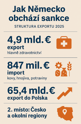 Jen od ledna do srpna 2025 dosáhly exporty z Německa do Ruska 4,9 miliardy eur, tedy zhruba 122 miliard korun.