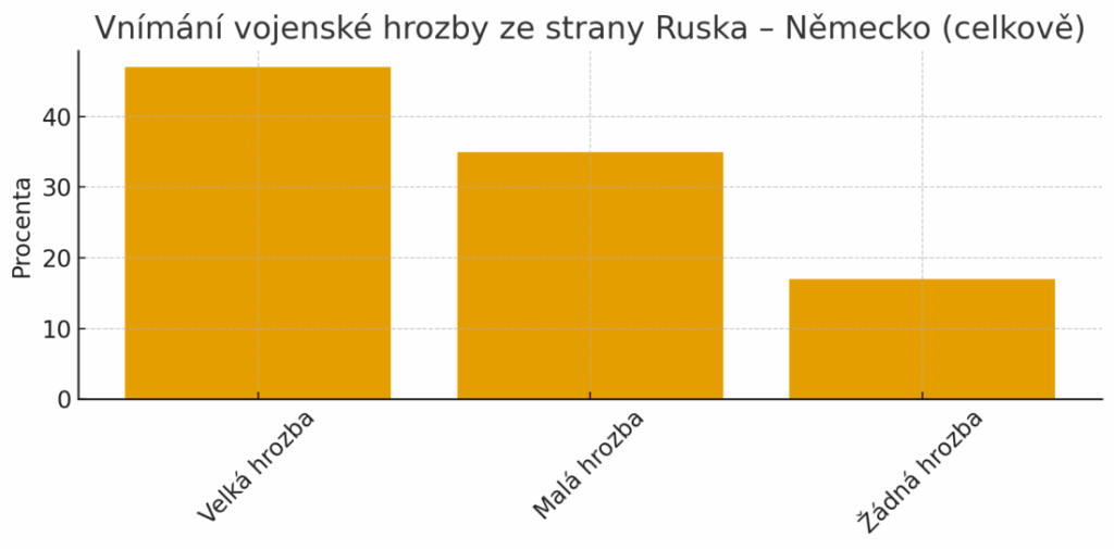 Německá veřejnost zažívá největší posun ve vnímání bezpečnosti od roku 1990. Podle čerstvé studie „The Berlin Pulse“ téměř polovina Němců považuje Rusko za vážnou vojenskou hrozbu, zatímco důvěra v USA a roli Německa v Evropě výrazně klesá. Průzkum také ukazuje dramatické rozdíly mezi Západem a bývalým Východem – a má přímý dopad i na Česko.