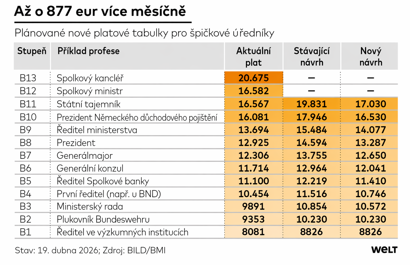 Původní plán byl přitom ještě ambicióznější. Podle prvních návrhů by si například spolkový kancléř polepšil o více než 5 000 eur měsíčně (cca 125 000 Kč), státní tajemníci o zhruba 3 000 eur (cca 75 000 Kč). Tento návrh ale ministerstvo stáhlo a následně upřesnilo, že nejvyšší politici – včetně kancléře a ministrů – si nepolepší.