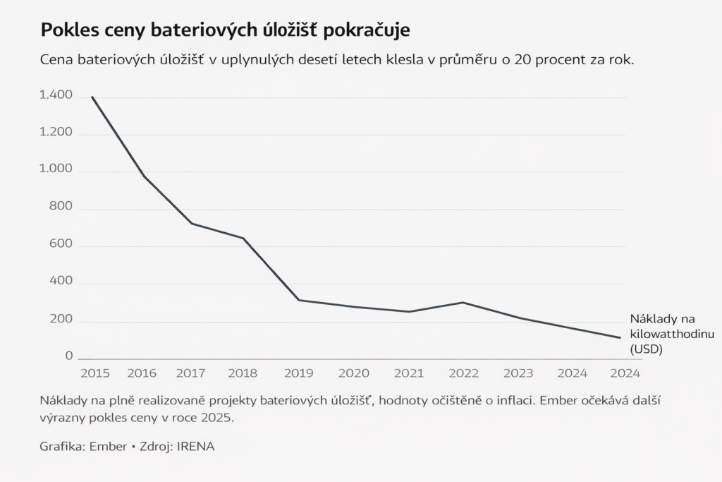Řešením těchto výkyvů jsou bateriová úložiště, která zažívají v EU doslova boom. Instalovaný výkon velkých baterií překročil v roce 2025 hranici 10 gigawattů, což je více než dvojnásobek oproti roku 2023.