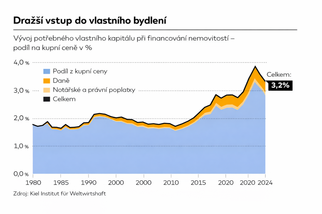 Zásadní problém nepředstavuje pouze měsíční splátka, ale především nutnost vysokého vlastního kapitálu. V Německu dnes kupující běžně potřebují k dispozici více než 100 000 eur jen na vstupní náklady a vlastní zdroje.