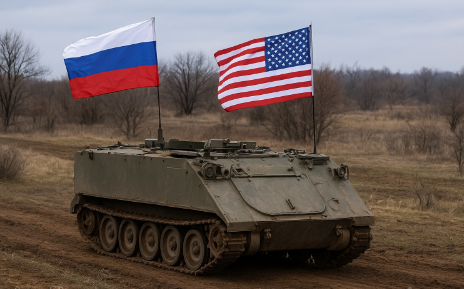Ruská obrněná vozidla s americkou vlajkou v bojích na Ukrajině: nový signál Moskvy po summitu Putin–Trump?