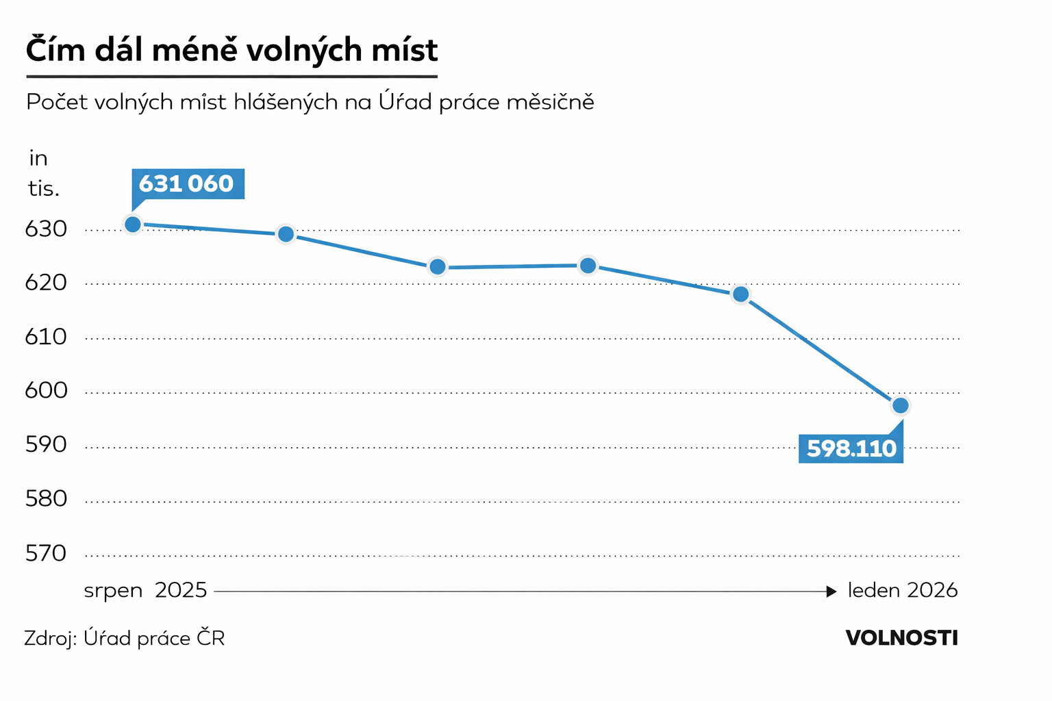 Velmi důležitým indikátorem je počet volných pracovních míst: