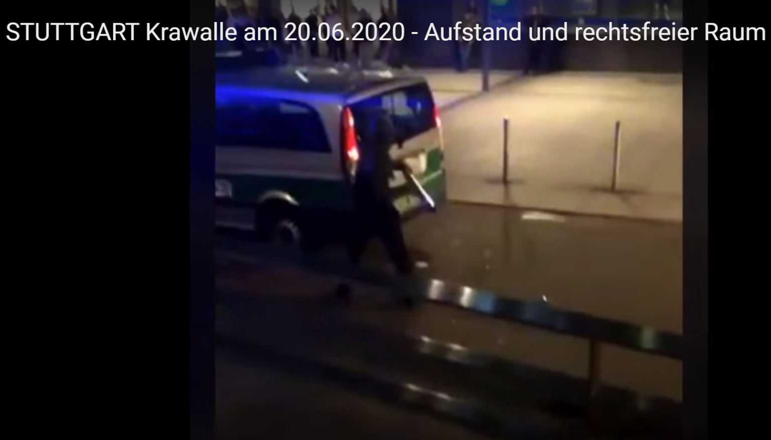 V noci ze soboty 21.6.2020 na neděli došlo v Stuttgartu k doposud v Německu nevídaným scénám. Pouliční plebs atakoval policisty, rozbíjel výlohy a raboval obchody. 24 osob bylo zatčeno (z toho 12 německých státních příslušníků), z celkového počtu asi 500 převážně mladistvých mužských agresivních účastníků této noční „párty“.