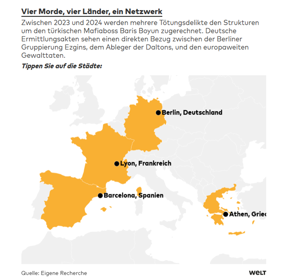 Podle vyšetřovatelů stojí za eskalací násilí turecká mafiánská skupina zvaná Daltons, napojená na nechvalně známého bosse Barise Boyuna, který je obviněn z vražd v Evropě. Berlín se tak během několika měsíců stal bojištěm jejich evropské pobočky.